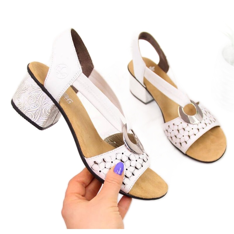 Detalhes: Sandálias de couro com borracha Rieker W RKR433 branco