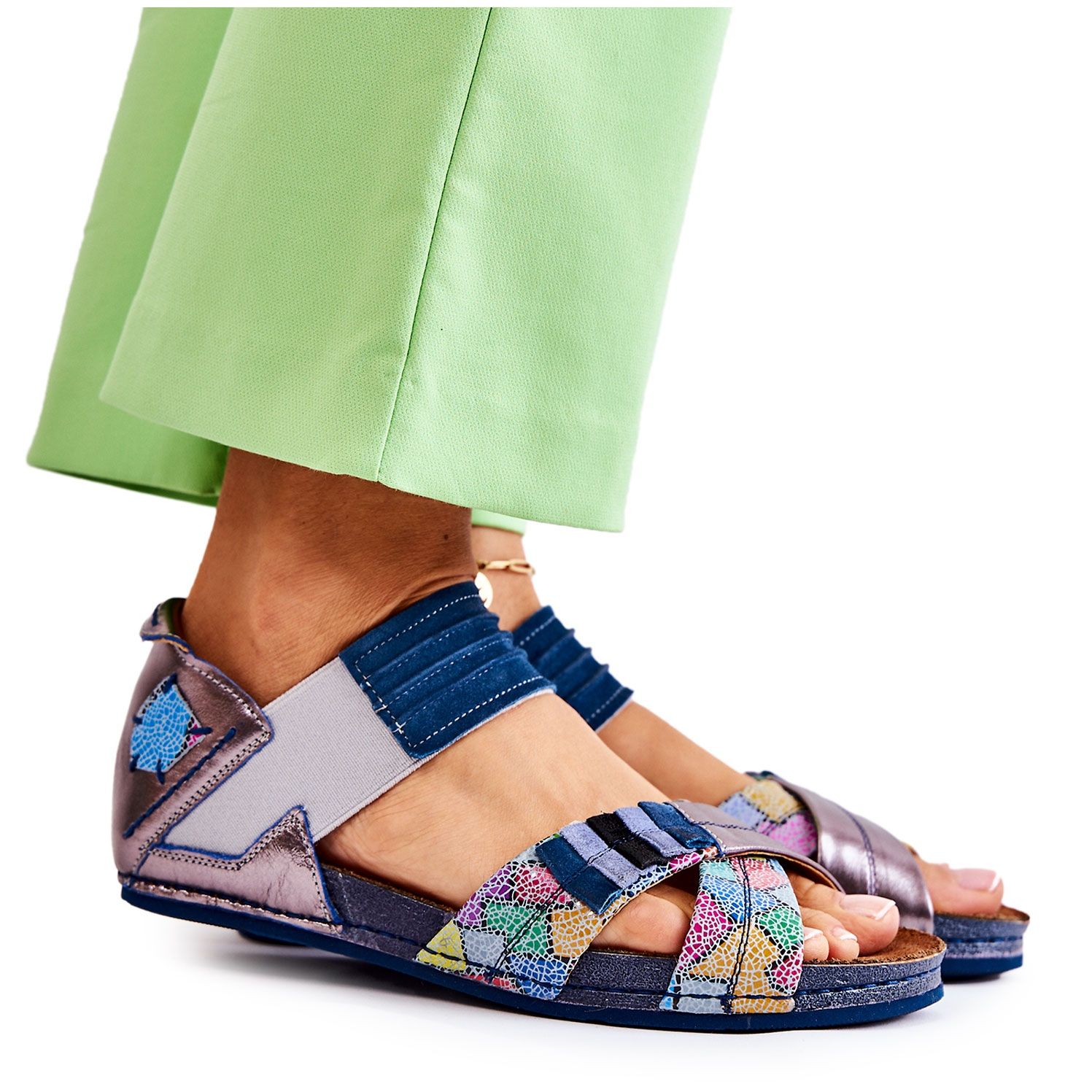 Maciejka Sandálias de couro com nervuras Maciejka 03375 azul
