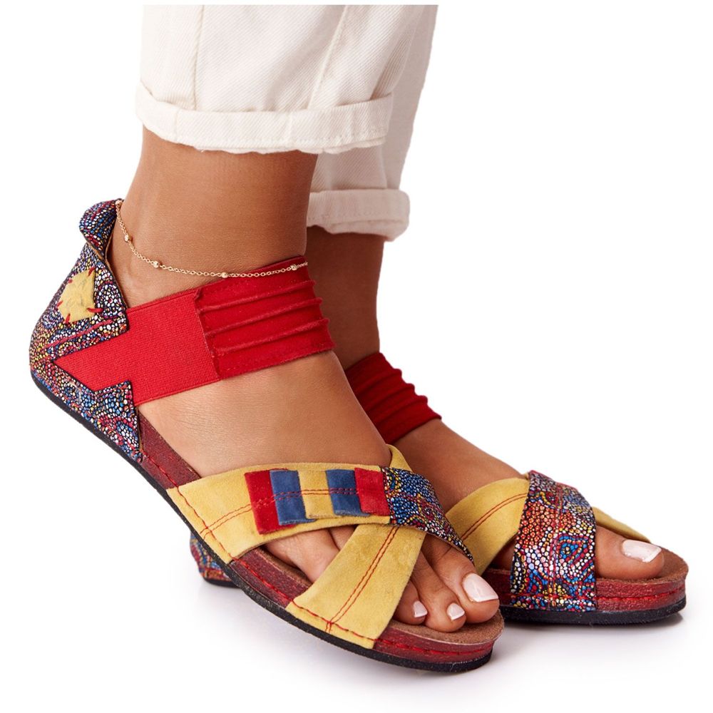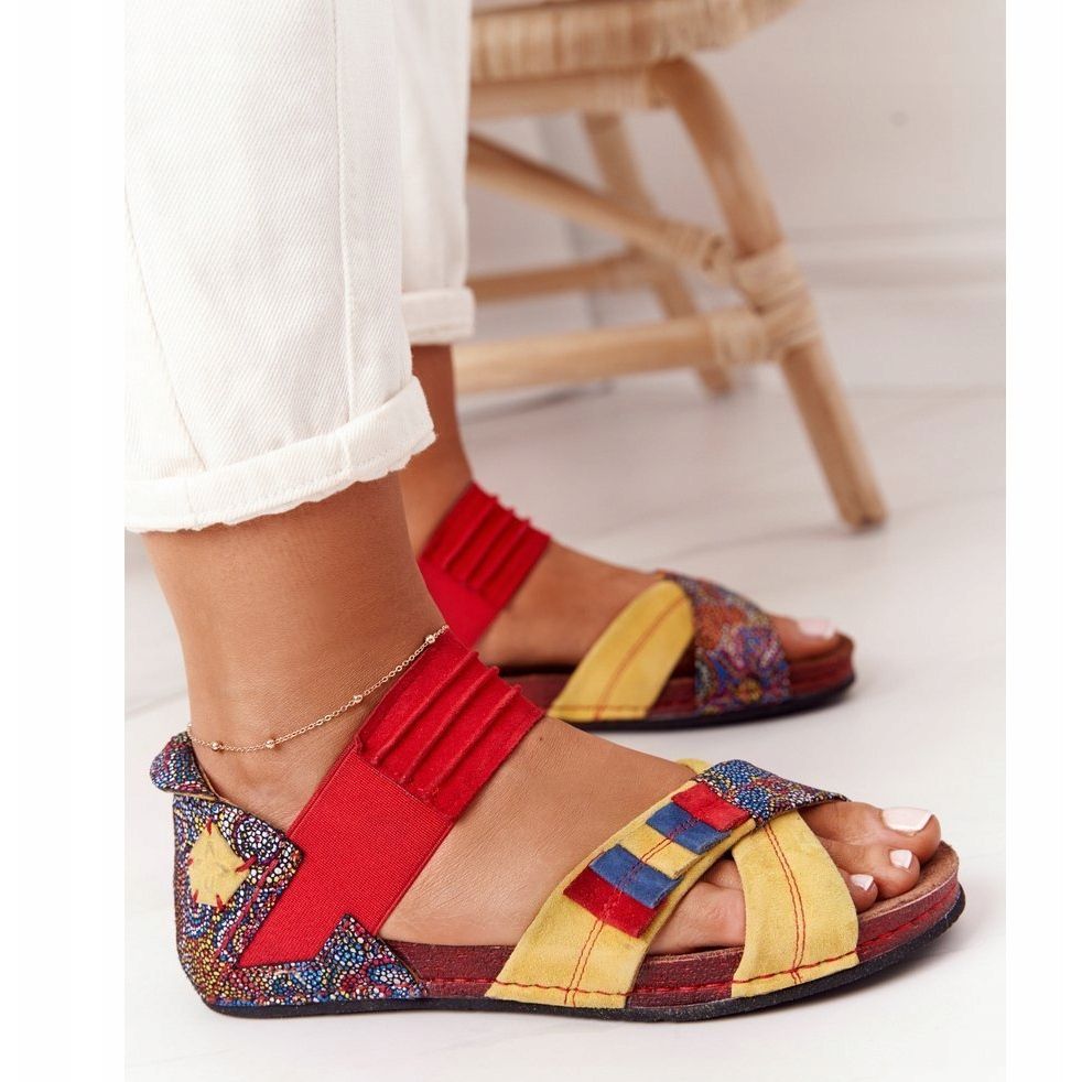 Sandálias de couro Maciejka 03375-vermelho-amarelo