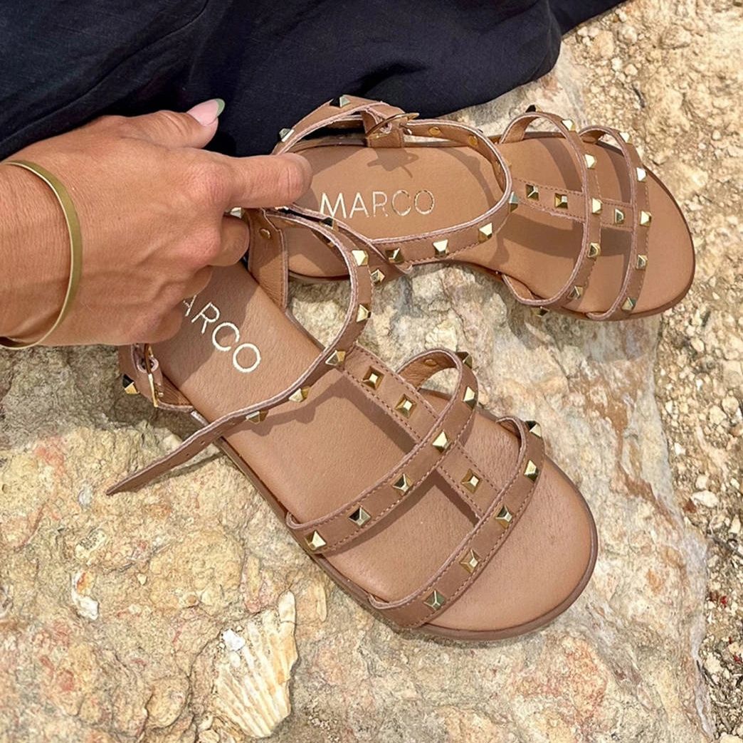 Marco Shoes Sandálias de couro com tachas douradas marrom