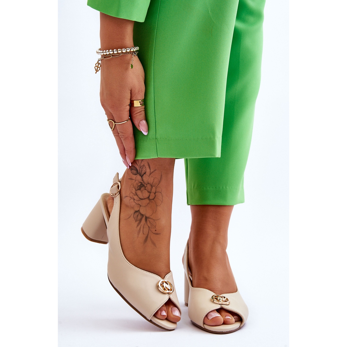 Detalhes: Sandálias de couro de salto alto bege Hette da moda