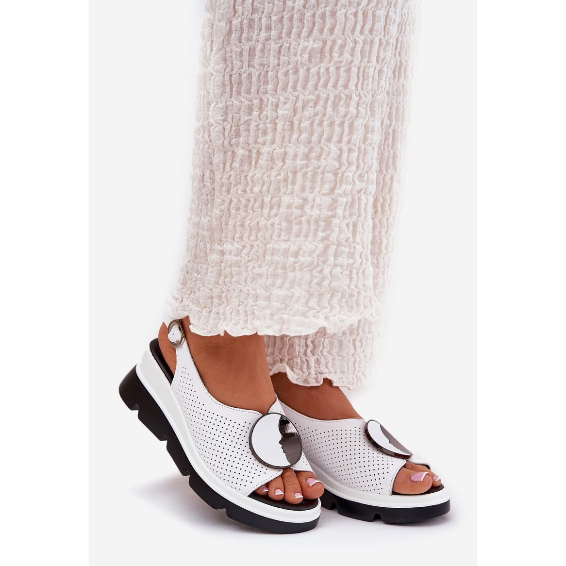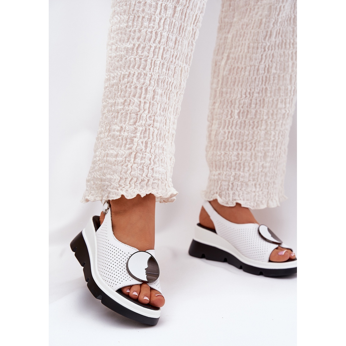 S.Barski S.Barski Sandálias de couro feminino com uma cunha com um ornamento S. Barski LR51-788 White branco