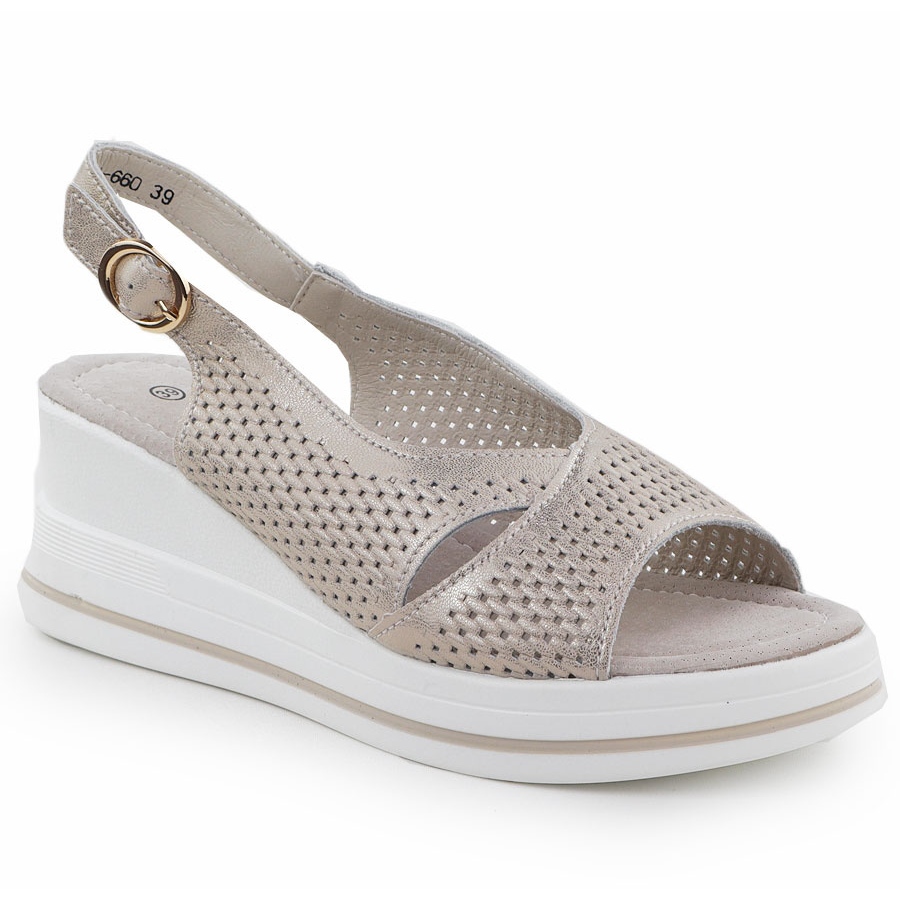 S.Barski S.Barski Sandálias de couro feminino de abertura no Złote S. Barski LR51-660 cunhas dourado