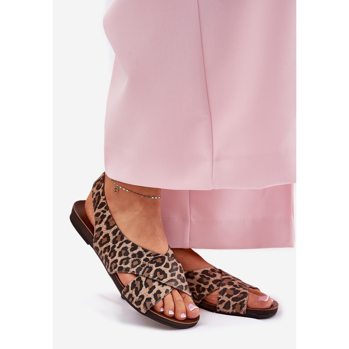 Zazoo Zazoo Sandálias de couro feminino leopardo marrom leopardo bege
