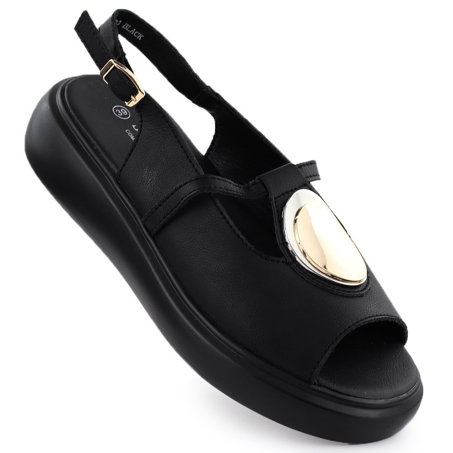 S.Barski S.Barski Sandálias de couro feminino na plataforma Czarne S. Barski GR51-603 preto