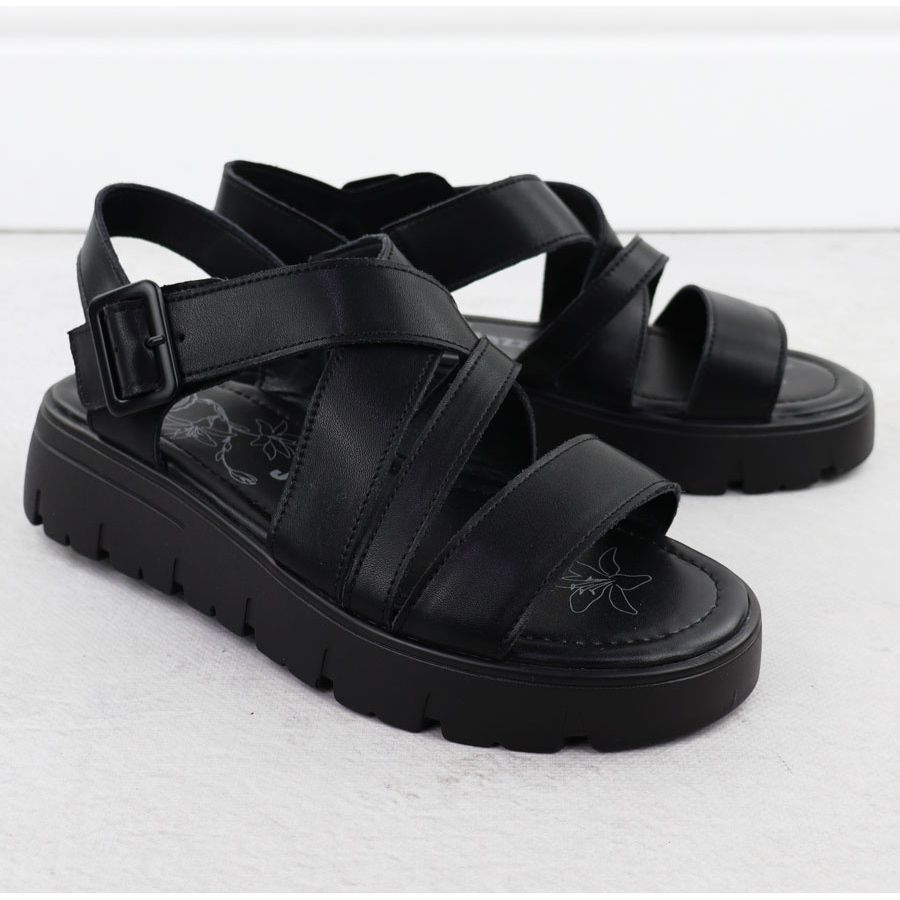 Detalhes: Sandálias de couro feminino na plataforma Roman Black Jezzi 8716 preto