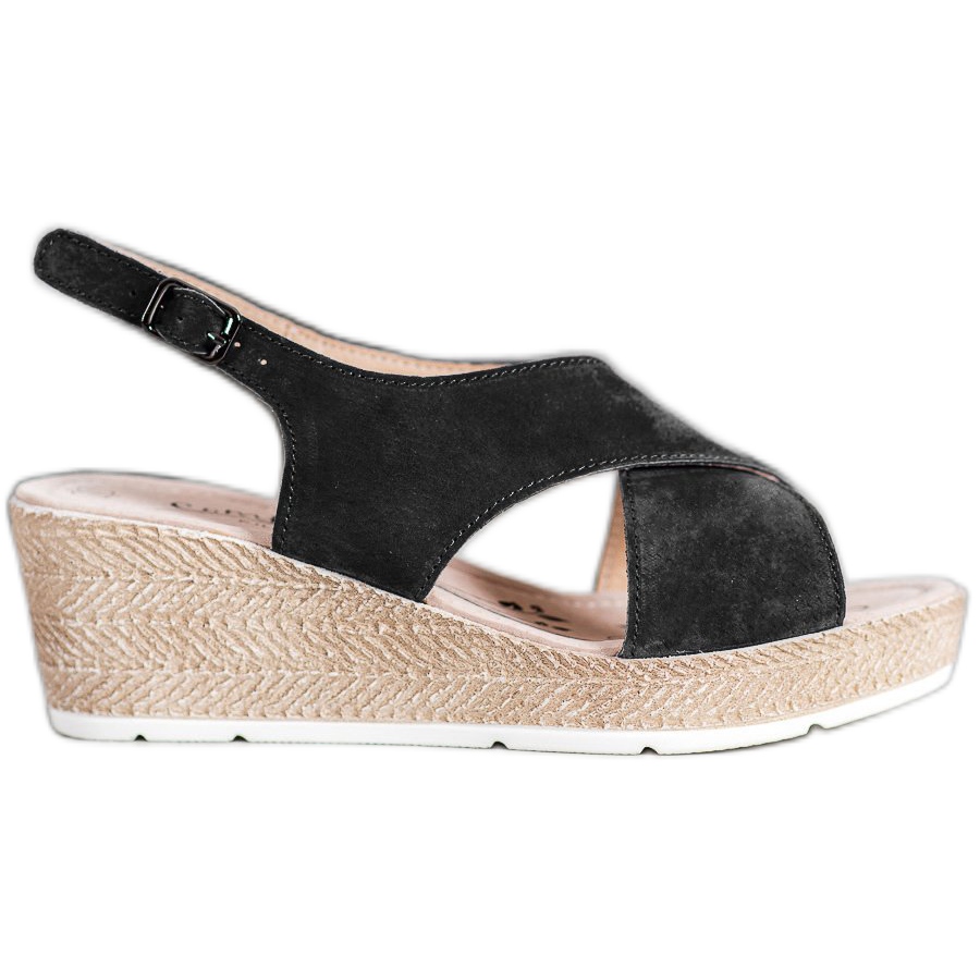 Uma plataforma alta de 6 cm garante não só um look fashion, mas também conforto de uso. O fecho clássico com fivela garante estabilidade e o salto aberto confere leveza e liberdade. Confeccionadas em cabedal natural, essas sandálias proporcionam excelente durabilidade e aspecto estético.