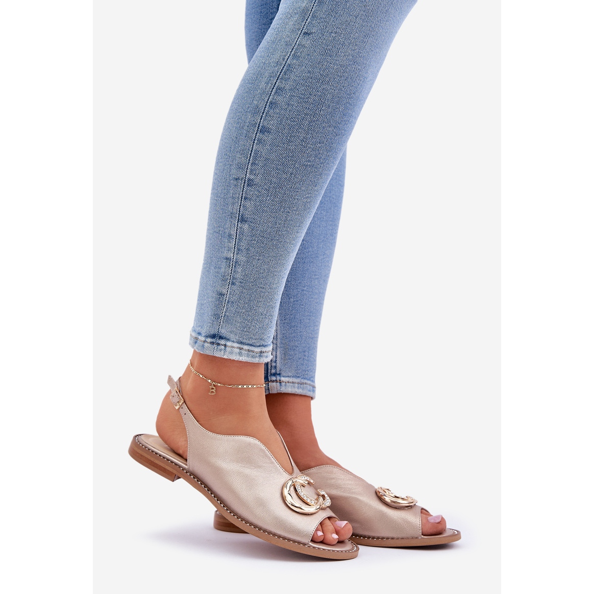 Detalhes: Sandálias de couro lisadas com a decoração de Laura Messi 2865 Zlotys dourado