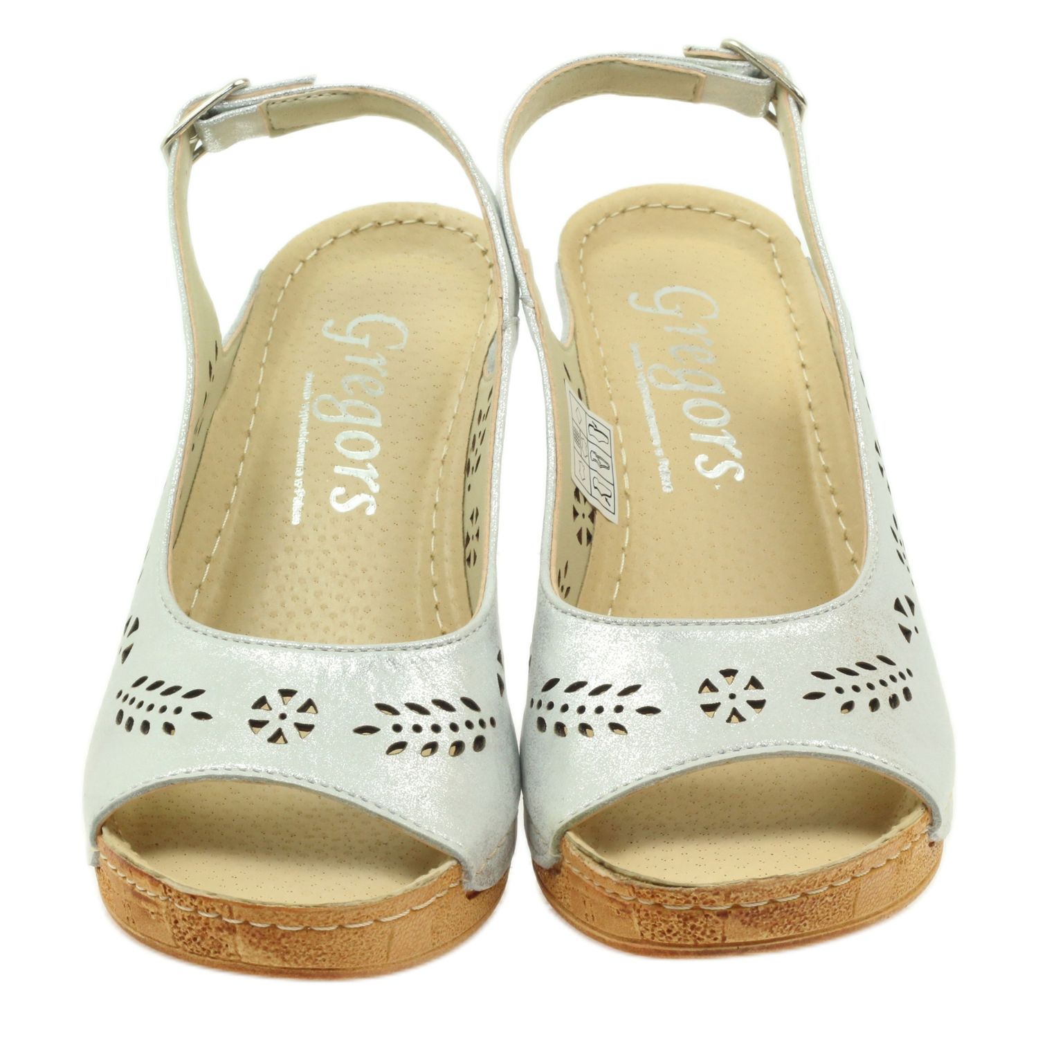 Gregors Gregors Sandálias de couro metálico feminino para cunhas de prata 709