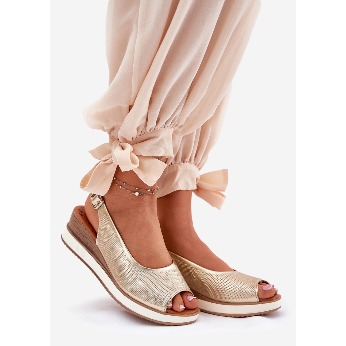 Descubra a elegância e a conveniência com sandálias na cunha ARTiker 56C2312 em uma cor dourada única. As sandálias dessas mulheres foram cuidadosamente feitas de couro natural de alta qualidade, que oferece não apenas aparência estética, mas também o conforto de usar o dia todo.