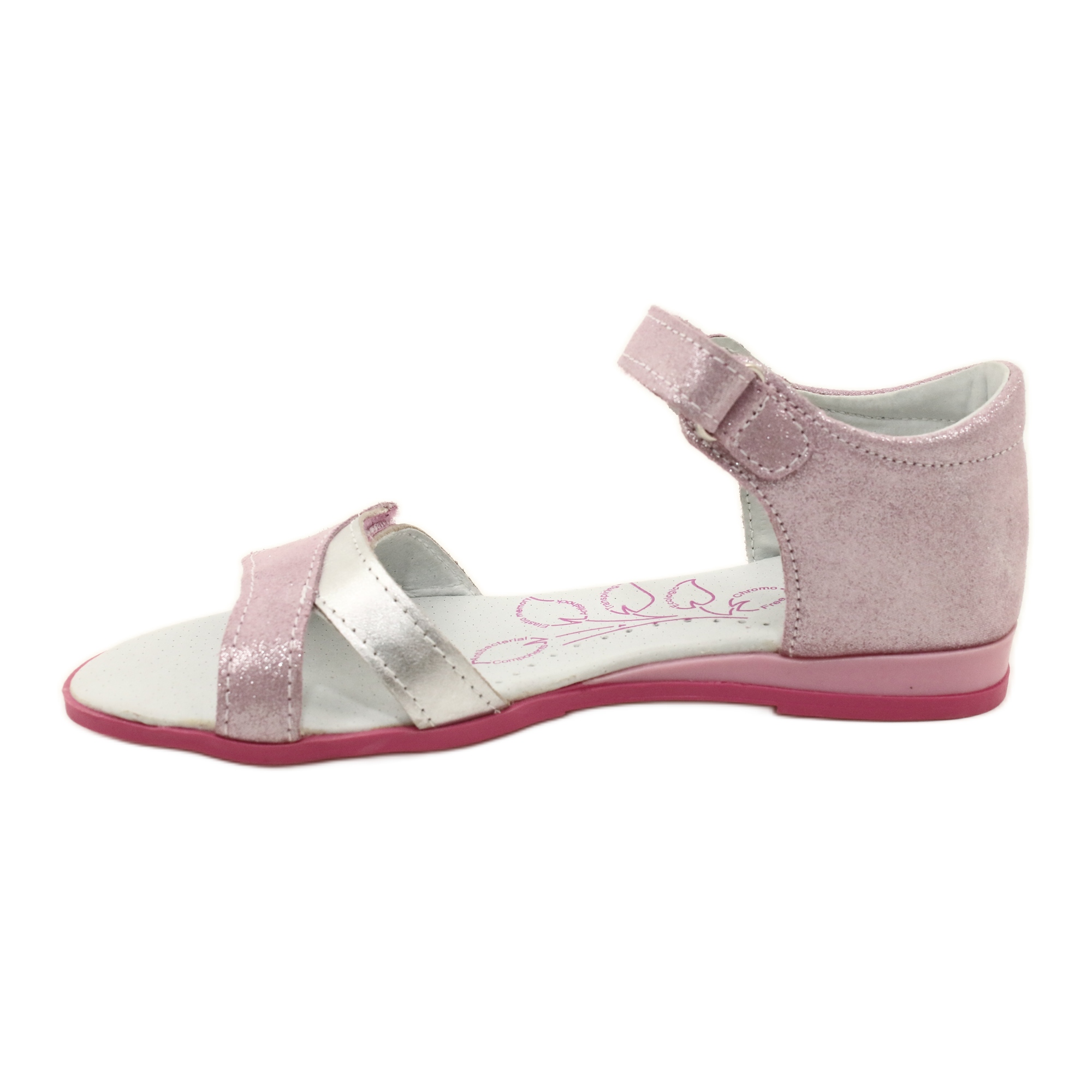 RenBut Sandálias de couro para menina com velcro RenBut 4333 rosa/prata