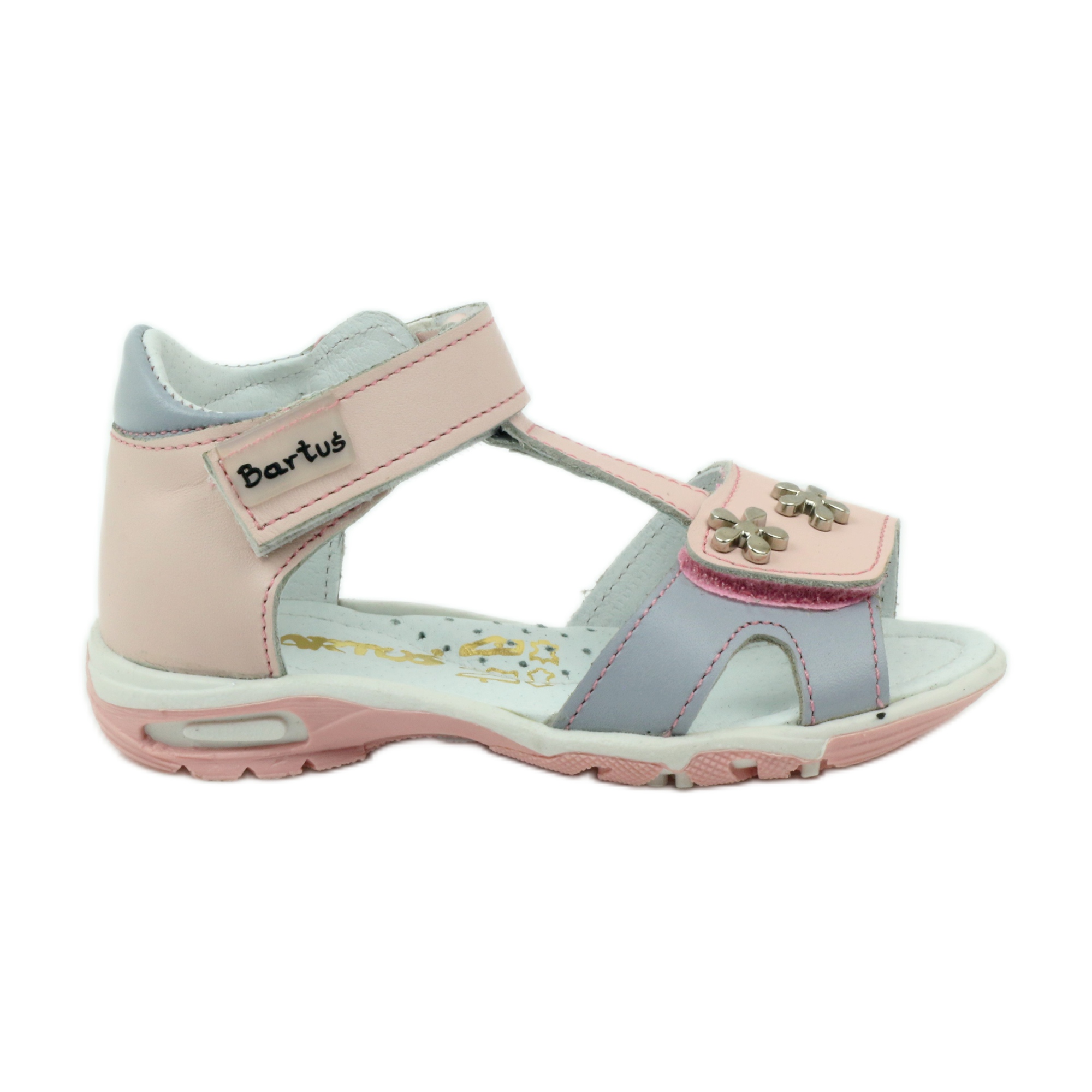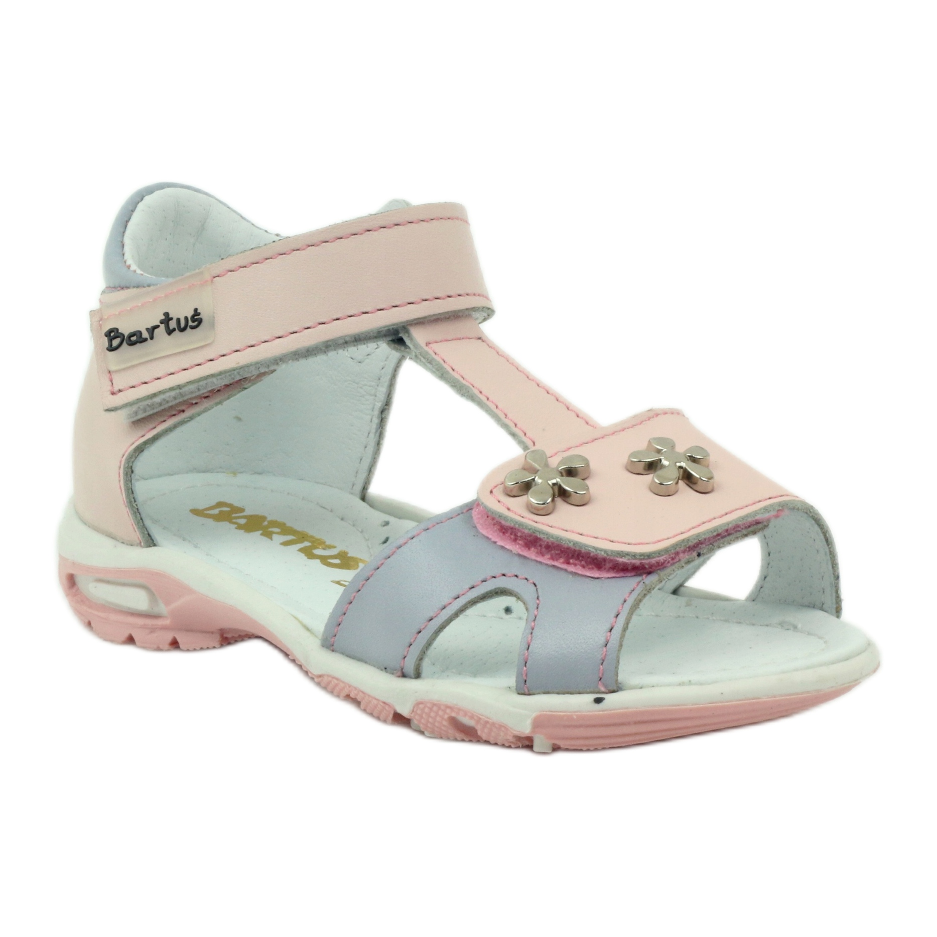 Bartuś Sandálias de couro para velcro 138 rosa bartuś cinza
