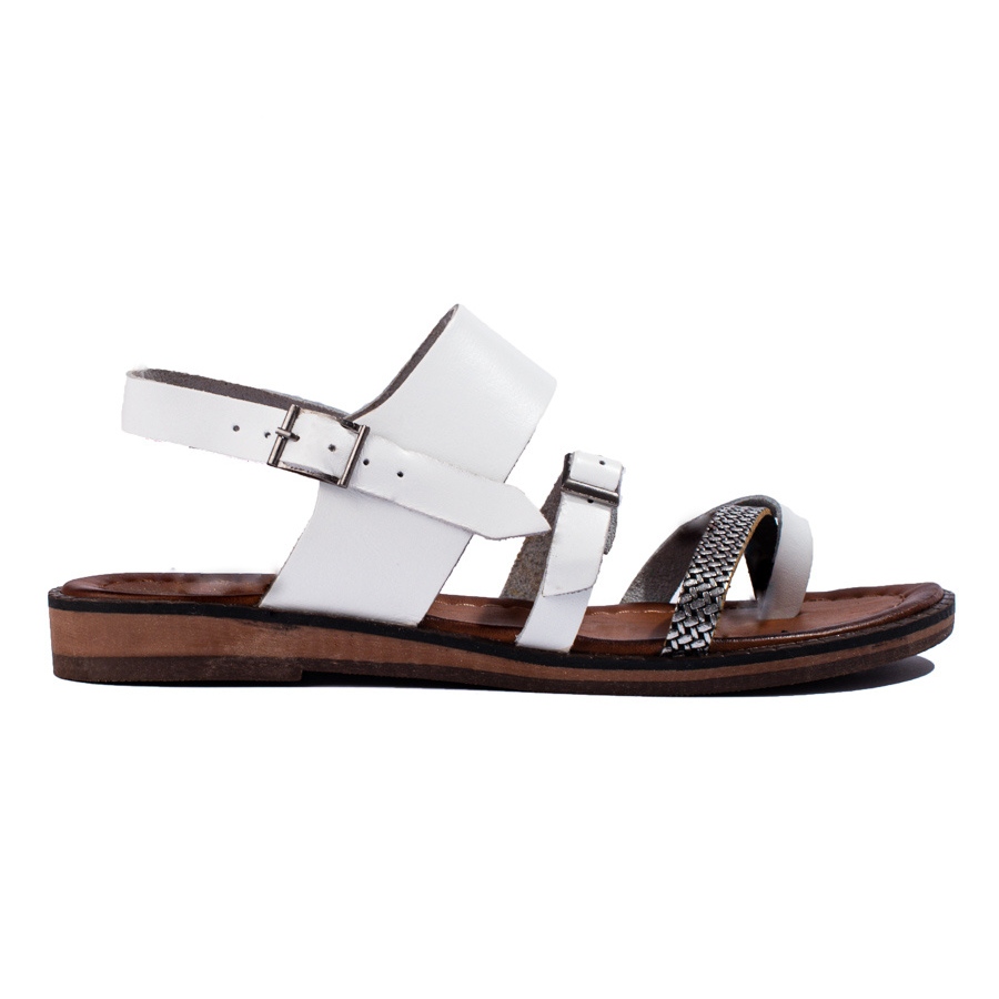 W. Potocki - sandálias de couro feminino, cor branca