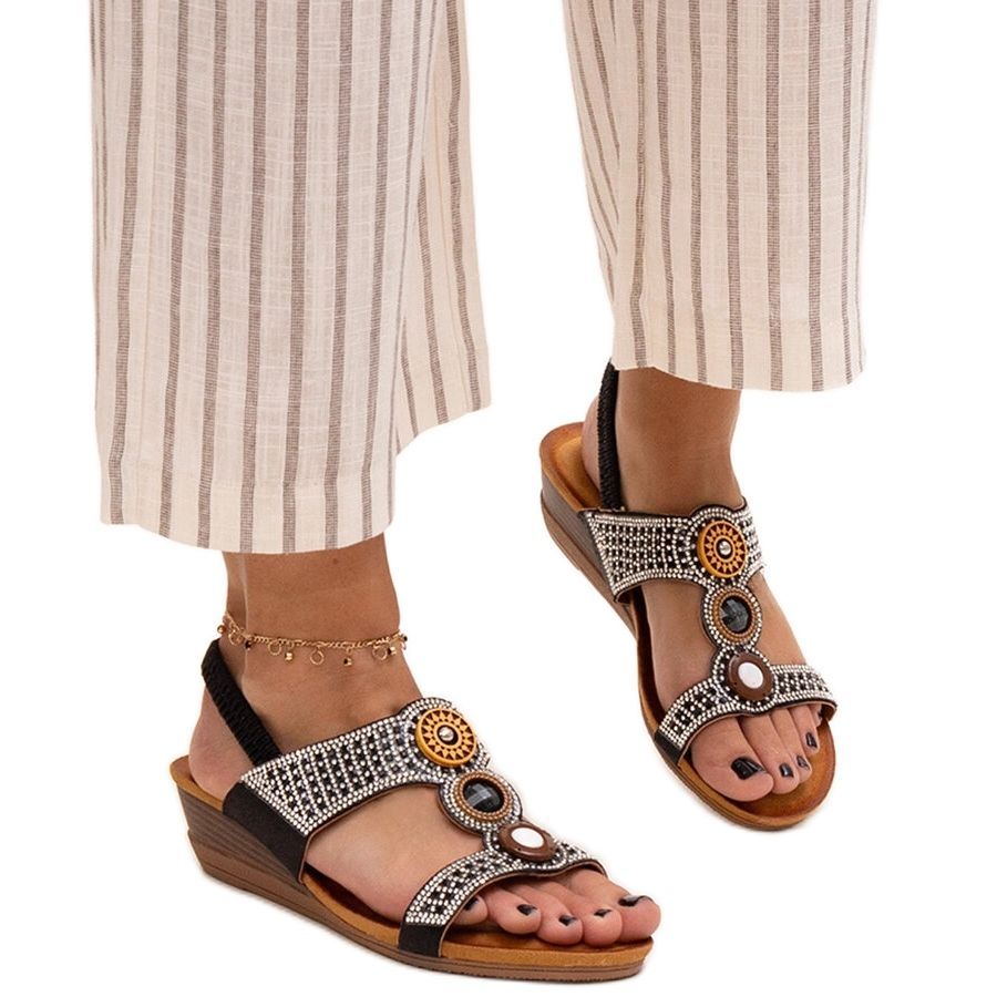 Descubra o charme incomum do verão com sandálias brilhantes em uma cunha baixa de Azeez em uma cor preta elegante! Esses sapatos únicos são uma proposta ideal para mulheres que valorizam moda e conforto em um.