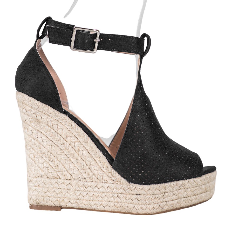 Este calçado único será perfeito para o estilo de verão - tanto com calças como com vestidos. A cor preta universal faz com que combinem com praticamente tudo, e o padrão vazado acrescenta leveza e um caráter moderno.