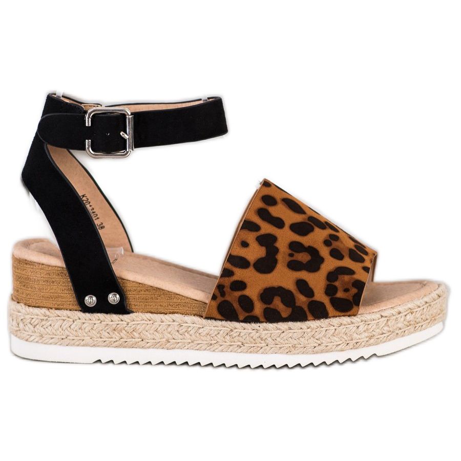 Kylie Kylie Sandálias de cunha com estampa de leopardo castanho preto