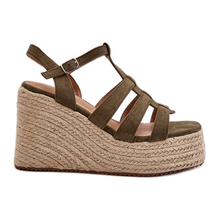 Um banco de 10 cm de altura e uma plataforma com uma trança de juta oferecem excelente suporte para os pés, o que faz com que longas caminhadas. Feito de camurça ecológica de alta qualidade, as sandálias são leves e arejadas, que serão perfeitas para dias quentes.