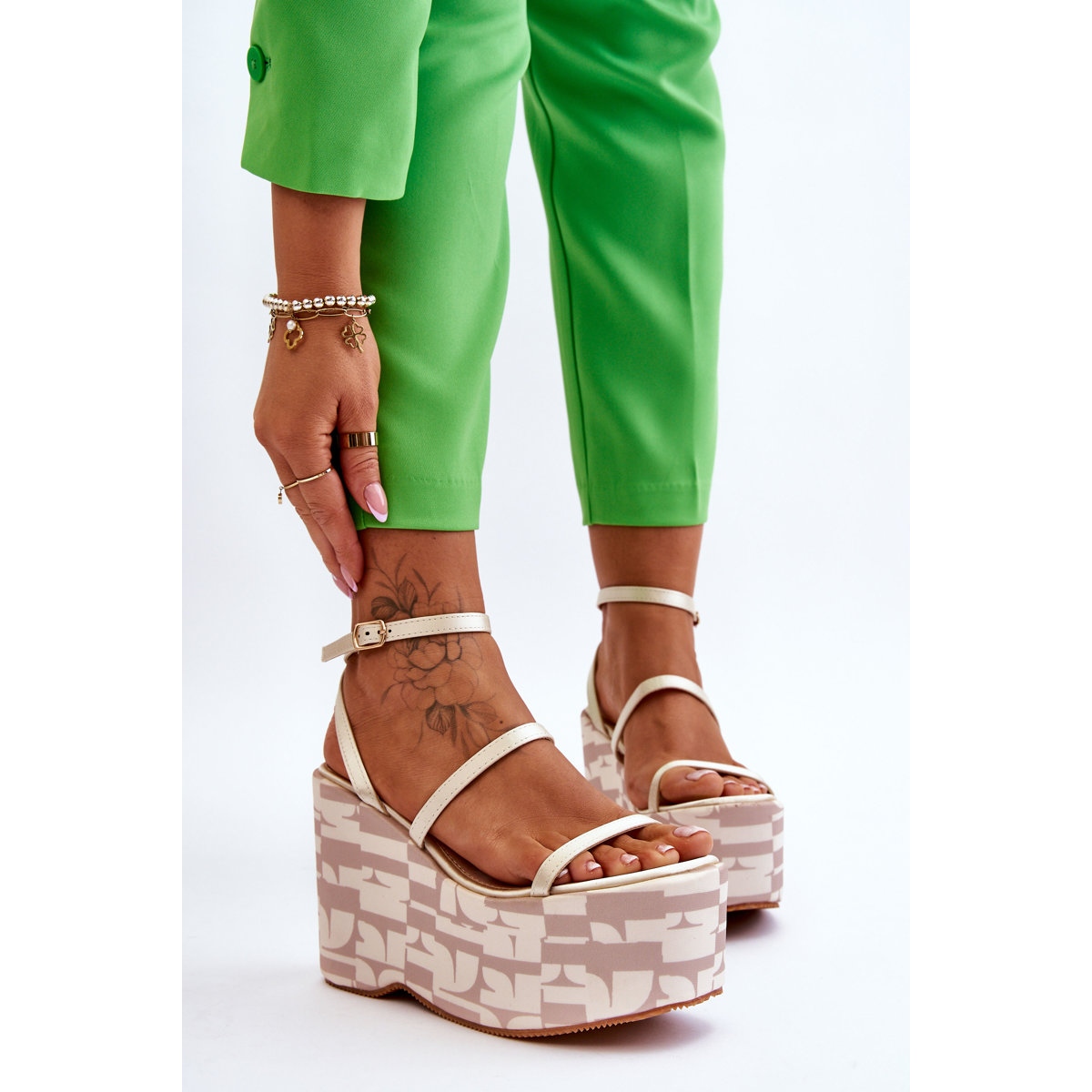 Detalhes: FS1 Sandálias de cunha da moda com estampas bege Claria castanho