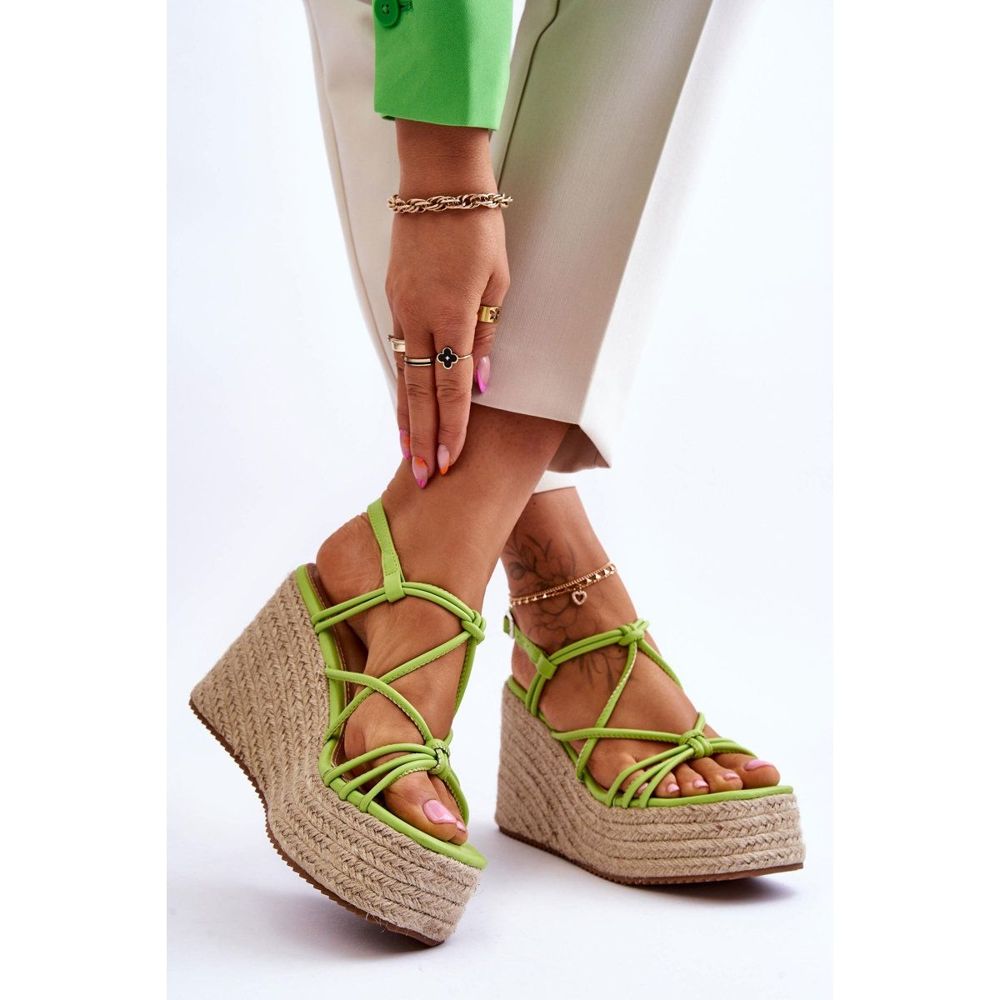 Inna marka Sandálias de cunha da moda com trança verde Nessia