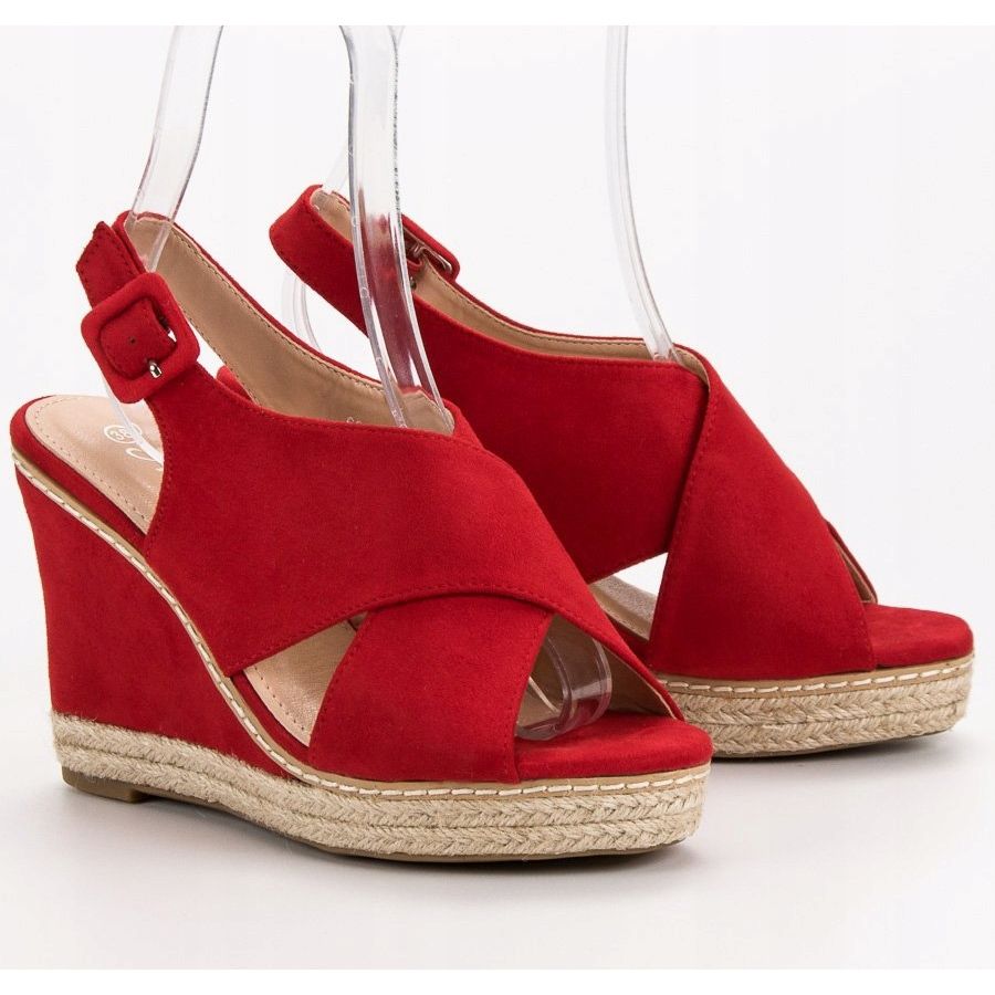 Detalhes: Anesia Paris Sandálias de cunha de camurça vermelho