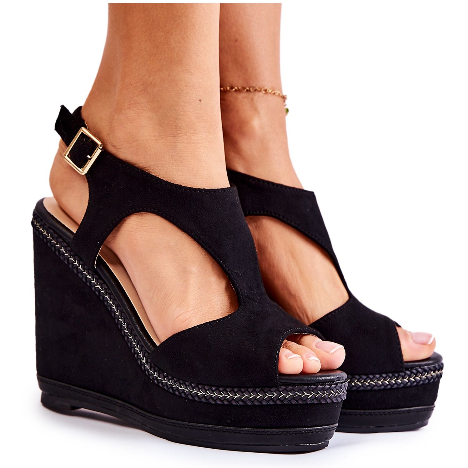 Detalhes: PG1 Sandálias de cunha de camurça clássicas pretas Lysette preto