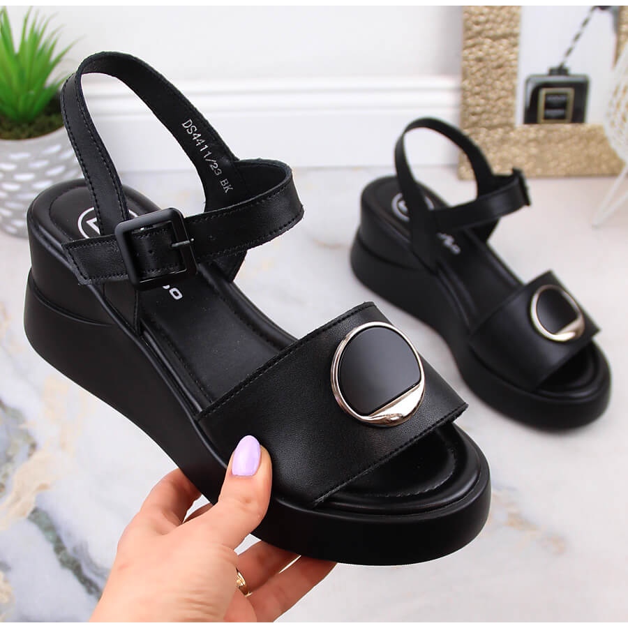 Detalhes: Sandálias de cunha de mulher em pele preta Filippo DS4411 preto