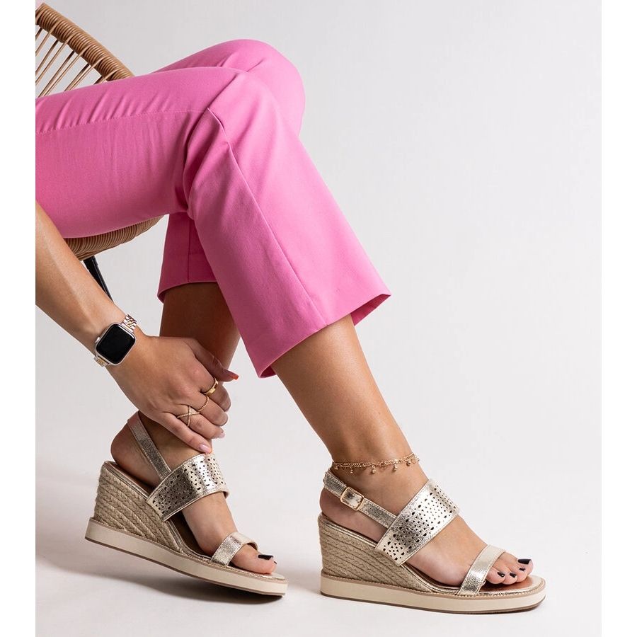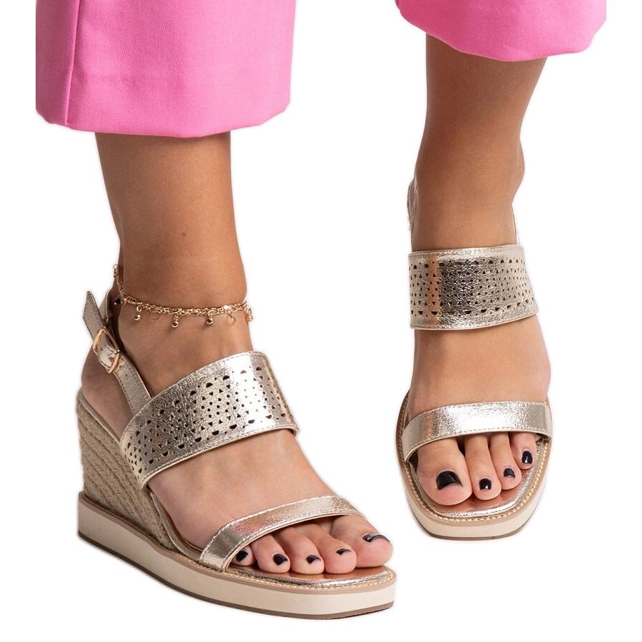 - Modelo: Sandálias alpercatas de cunha dourada 7210