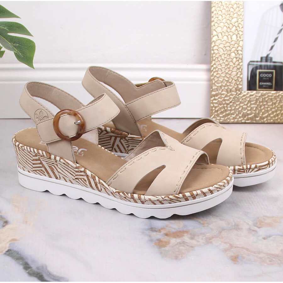 Detalhes: Sandálias de cunha femininas confortáveis bege Rieker 67173-60