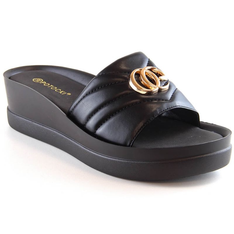 Estilo e conforto em uma versão moderna - Mulas de cunha Potocki W YQ21001 WOL159A preto