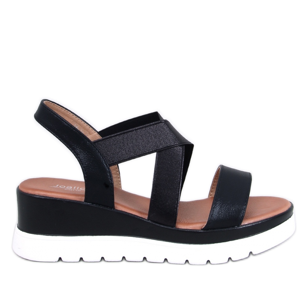Descubra as sandálias de cunha preta exclusivas que combinam perfeitamente elegância e conforto. Essas sandálias femininas negras elegantes de outra marca são a escolha perfeita para os dias de verão. Graças à altura do calcanhar de 6 cm e uma plataforma de 3 cm de altura, você pode aproveitar a altura adicional, sem desistir da conveniência.