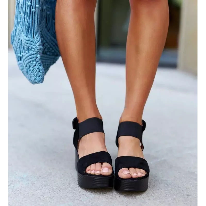 Detalhes: Sandálias de cunha pretas, Romani preto