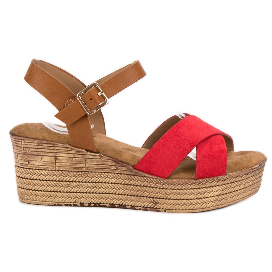 Detalhes: Primavera Sandálias de cunha marrom vermelho