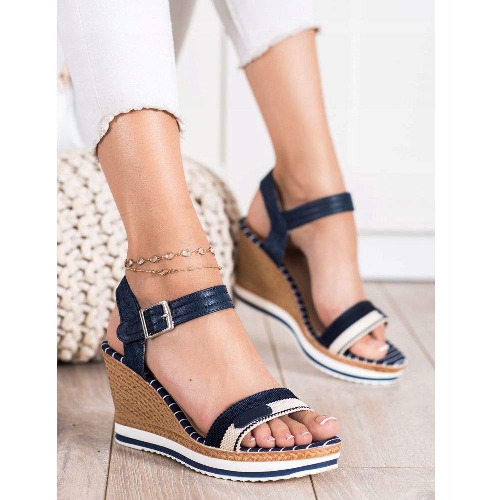 Detalhes: SHELOVET Sandálias de cunha azul marinho