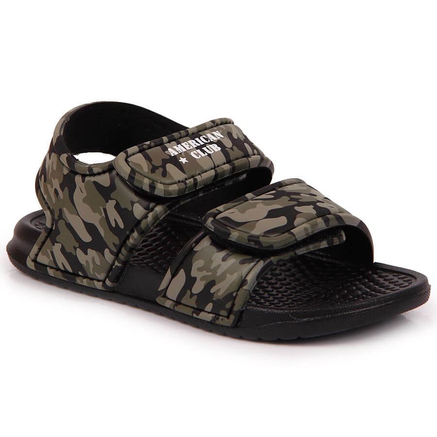 American Club Sandálias de espuma de velcro American Club para meninos preto cinza multicolorido verde