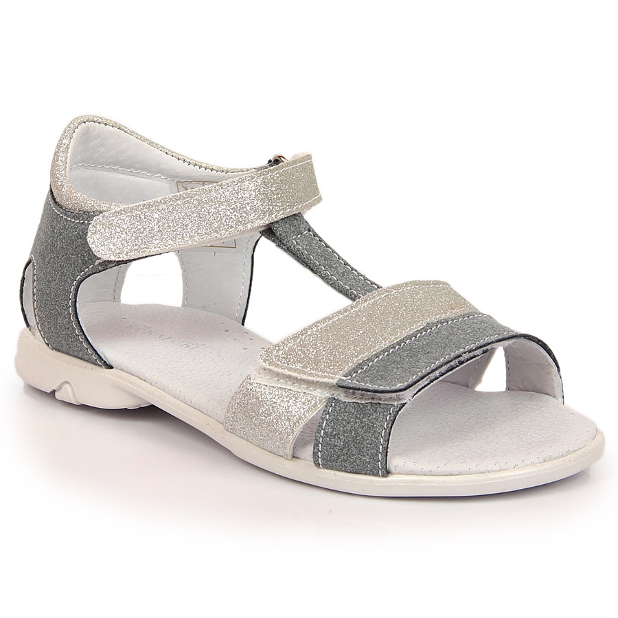 Detalhes: Sandálias de menina com velcro prateado Kornecki 6323 prata cinza