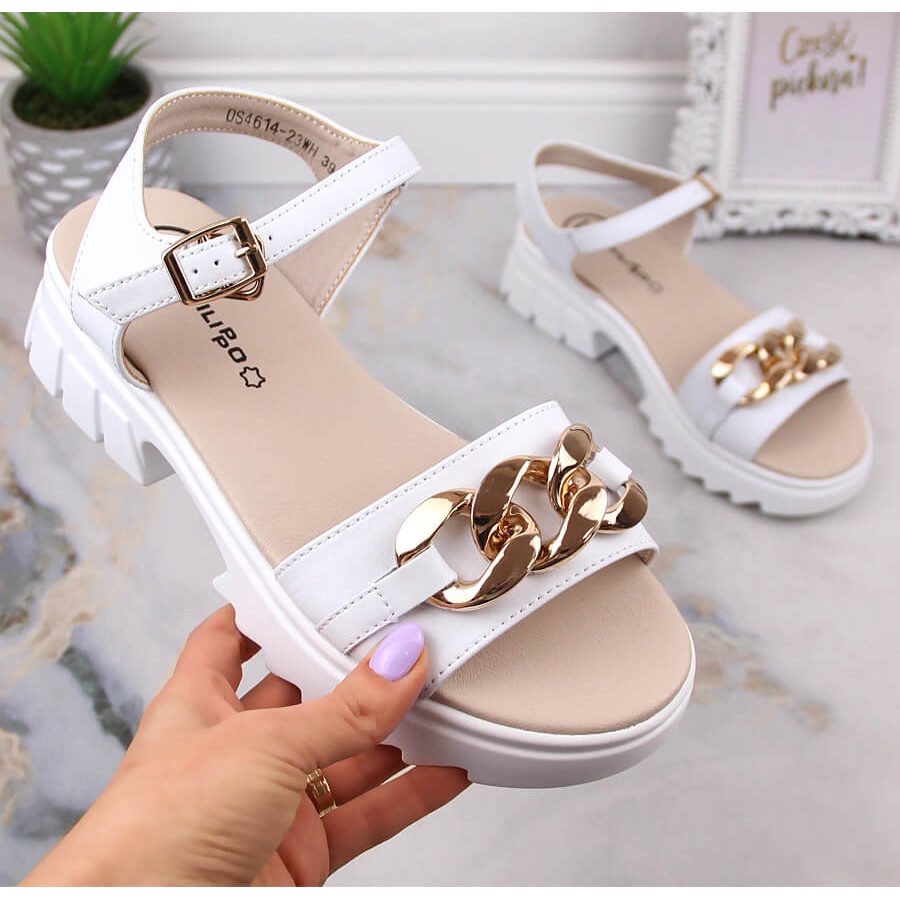 Detalhes: Sandálias de mulher em pele com corrente branca Filippo DS4614 branco