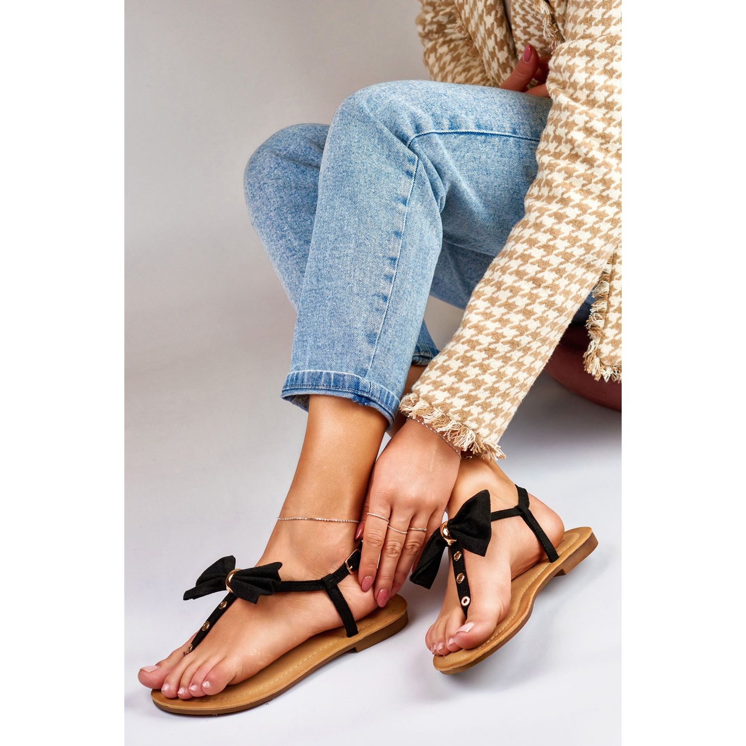 Detalhes: Sandálias de mulher negra com laço preto