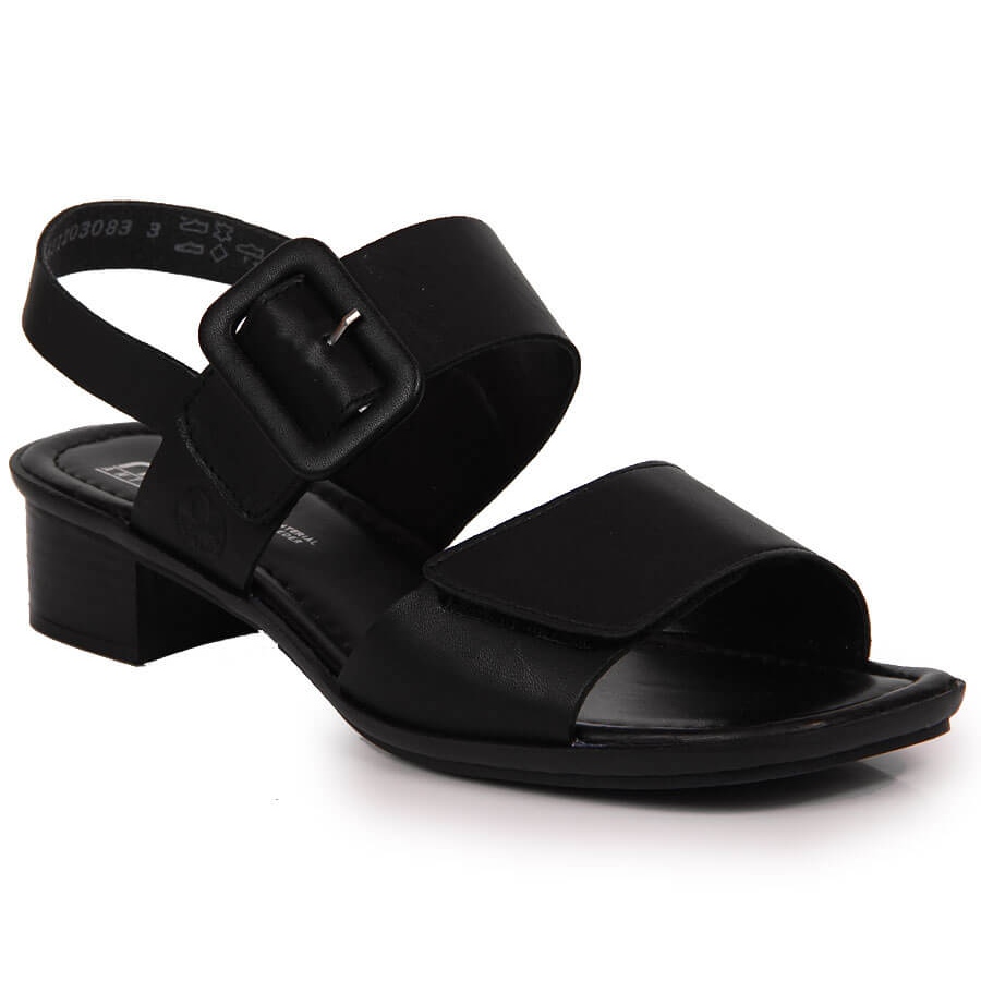 Detalhes: Sandálias de mulher pretas em pele Rieker 62663-01 preto