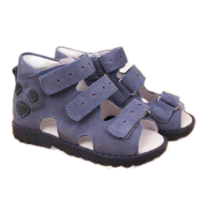 As sandálias de couro para meninos Kornecki com ursinho de pelúcia azul são a escolha perfeita para cada pequeno explorador. Este calçado único, registado como dispositivo médico, foi pensado para o bom desenvolvimento dos pés delicados das crianças, o que os torna a solução ideal para rapazes activos.
