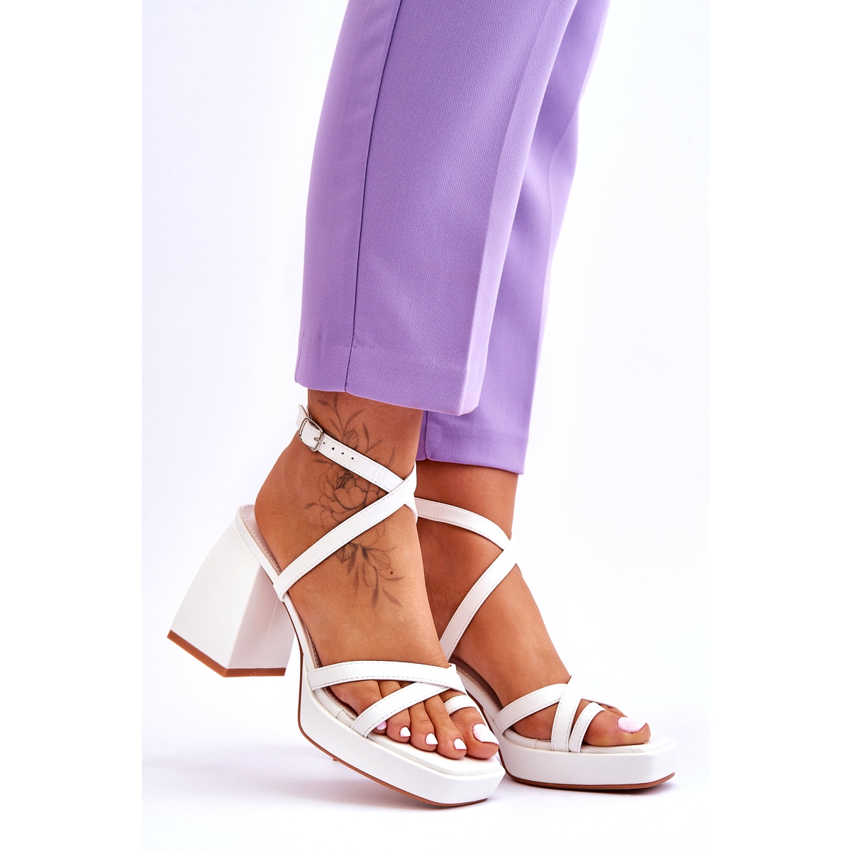 As elegantes sandálias de salto alto e plataforma White Secret Rose são a escolha perfeita para toda mulher fashion que deseja combinar elegância com conforto. Feitas em couro ecológico de alta qualidade, essas sandálias são o complemento perfeito para muitos estilos de verão. A sua cor branca e minimalista torna-os extremamente universais e adaptam-se tanto aos looks do dia a dia como aos mais formais.