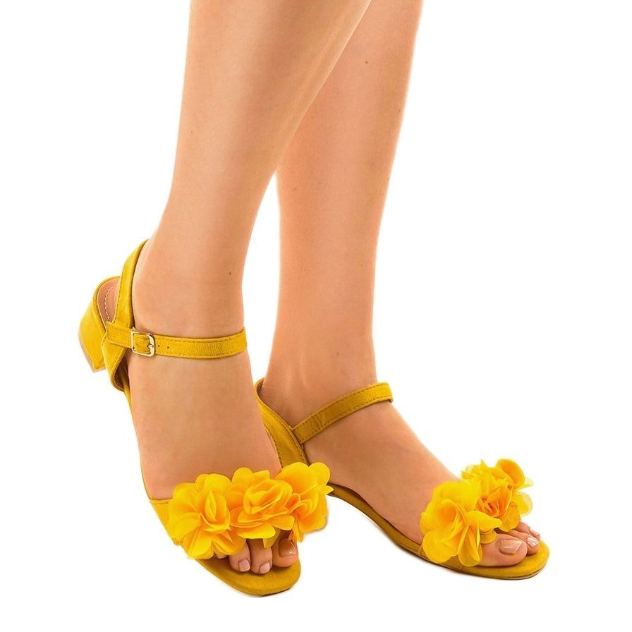 Detalhes: Sandálias de salto alto amarelas com flores X8903 amarelo