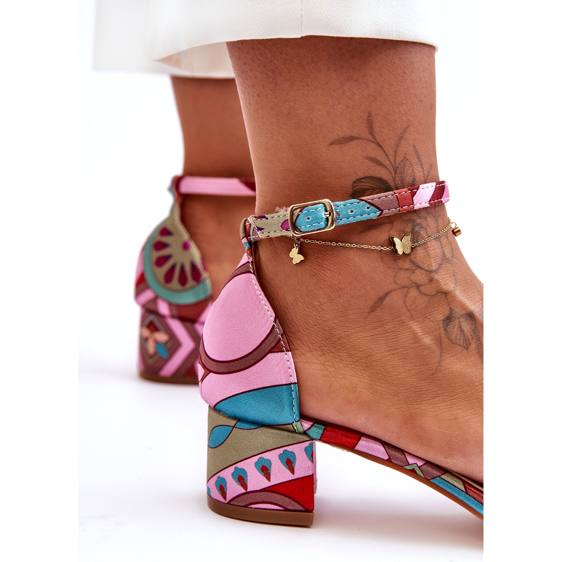 Detalhes: STEPHAN Sandálias de Salto Alto de Cetim Estampadas Rosa Mix Inspire Me! multicolorido