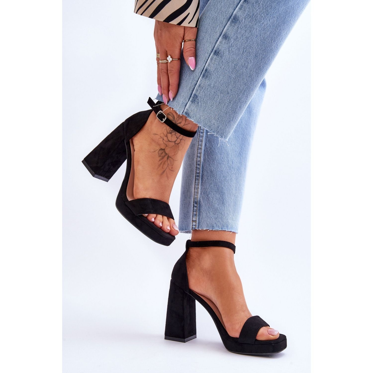 Detalhes: Sandálias de salto alto em camurça preta preto