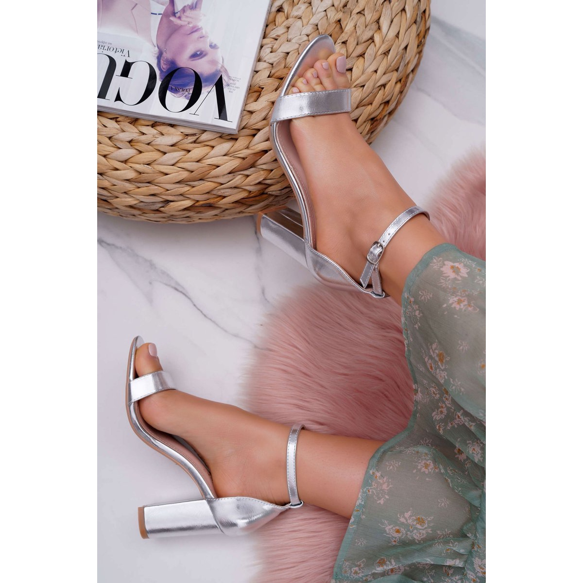 Detalhes: SEA Sandálias de salto femininas clássicas de Fiji prateadas cinza