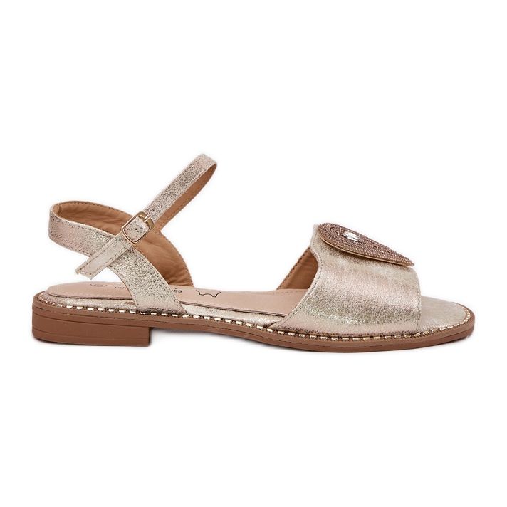 S.Barski S.Barski Sandálias de salto plano feminino com um ornamento de S. Barski Kv51-098 Zloty dourado