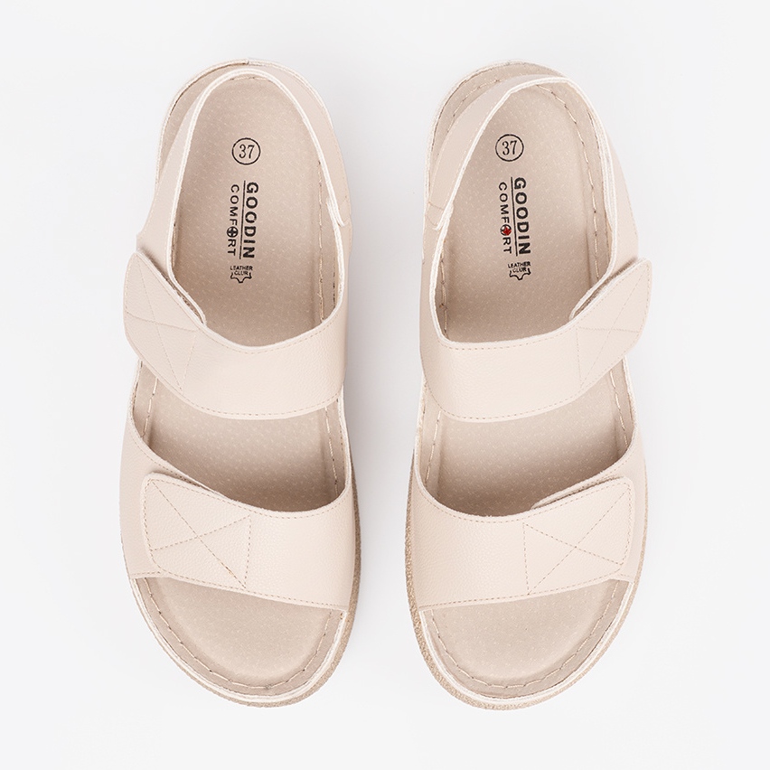 O charme das sandálias femininas bege leves em velcro de Goodin.pl combina elegância e conforto diário, o que os torna a escolha perfeita para os dias ensolarados de verão. Os saltos abertos e a falta de nariz garantem liberdade e ventilação, e seu design minimalista os faz encaixar quase todas as estilização - casual e mais formal.