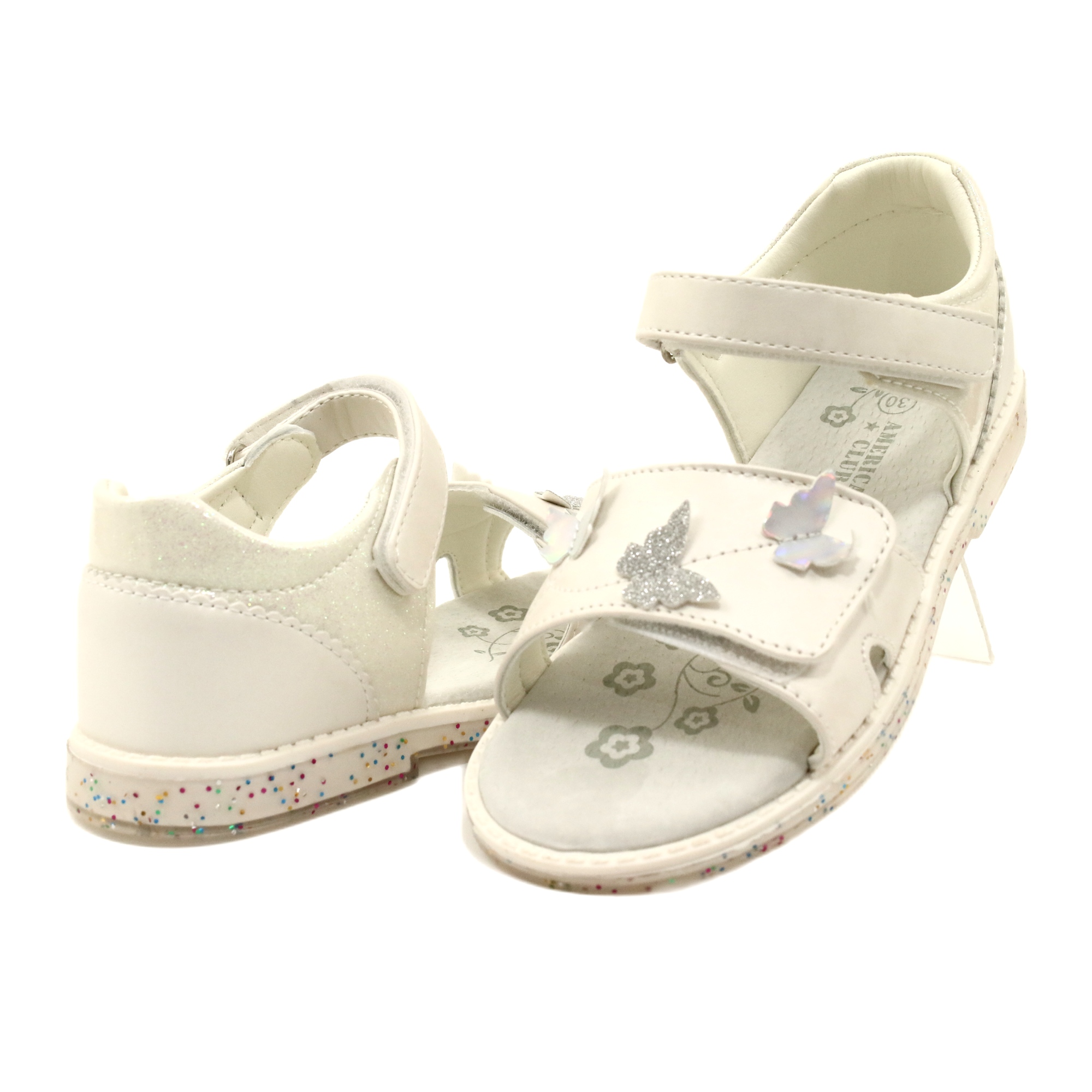 American Club Sandálias de velcro femininas em Butterflies American Club XD58/22 White branco