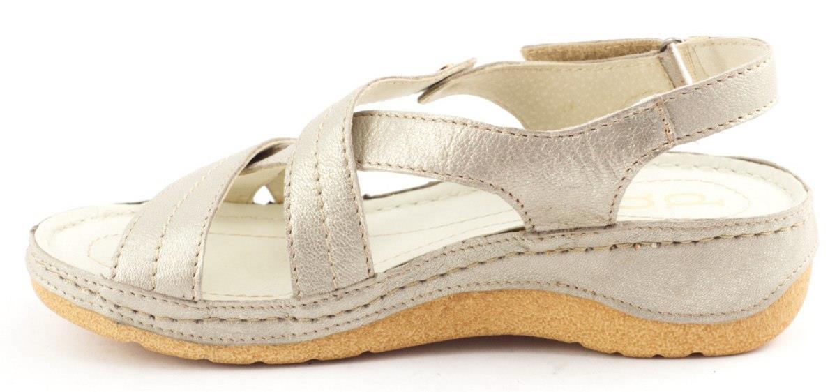Couro natural por fora e dentro garante durabilidade, boa ventilação e conforto de uso ao longo do dia. Uma cunha magnífica, mas estável, fornece uma certa etapa e uma aparência elegante sem desistir de conforto. A cor dourada faz com que as sandálias combinem perfeitamente com vestidos de verão, calças capréns ou saias arejadas, dando estilo de estilo.