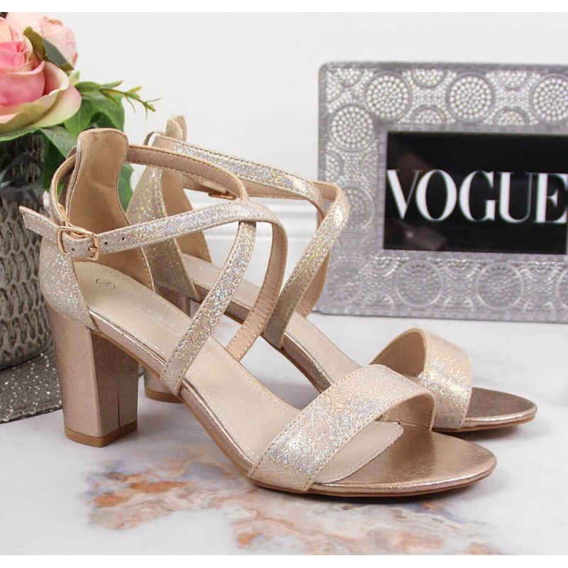 Filippo PAW355B Sandálias elegantes e confortáveis em uma cor dourada e elegante são uma ótima opção para saídas de verão e estilizações noturnas. O corte clássico com uma fivela ajustável e um salto estável, como um post (8 cm), combinam o personagem feminino e o conforto.