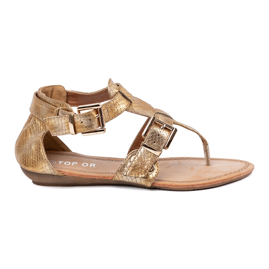 Essas sandálias douradas são calçados extremamente versáteis - são perfeitos para a praia, durante festas de verão, bem como nas estilizações cotidianas. A embalagem original do fabricante torna as sandálias ótimas como um presente.